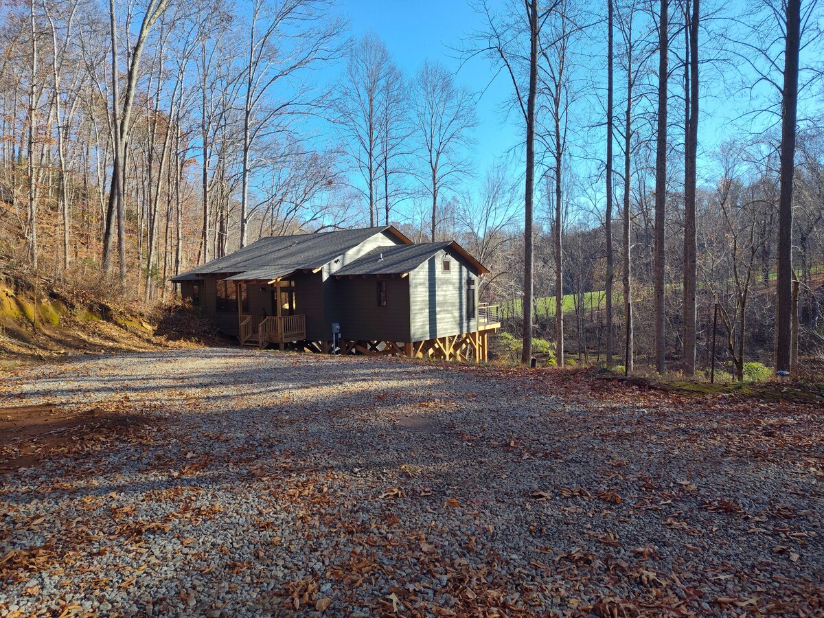 Esta cabaña única y aislada se encuentra en 75 acres en las montañas Blue Ridge. Disfruta de la acogedora chimenea de leña, el jacuzzi, la parrilla de carbón y la conexión a Internet de fibra óptica rápida y fiable si necesitas trabajar un poco mientras estás fuera. Cuenta con lavadora y secadora, cocina completa y admite mascotas (¡sin cargo por mascotas!), para que puedas disfrutar con toda la familia. Hay un televisor inteligente 4K de 55 pulgadas con aplicaciones, un cargador Tesla LVL 2, un armario lleno de juegos de mesa, libros y muchos artículos para entretener tanto a niños como a adultos.
