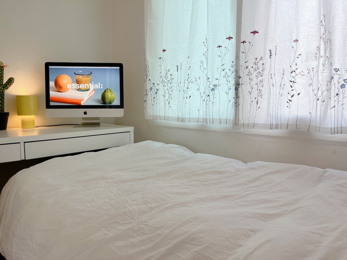 Un estudio moderno y luminoso en el mismo centro de Hongdae. Minimalista pero cálido, con detalles en amarillo brillante, el estudio está equipado con una cocina completa, nevera, lavadora (que tiene función de secadora), aire acondicionado, calefacción por suelo radiante (incluso en el baño), un baño completo, una cama tamaño queen (1500 mm de ancho), una espaciosa estación de trabajo/mesa (1400 mm de ancho) y otras comodidades meticulosas que puedas necesitar. Ubicado en la primera planta de un edificio de 4 pisos (donde mi familia vive en el último piso) con una entrada independiente para ti.
