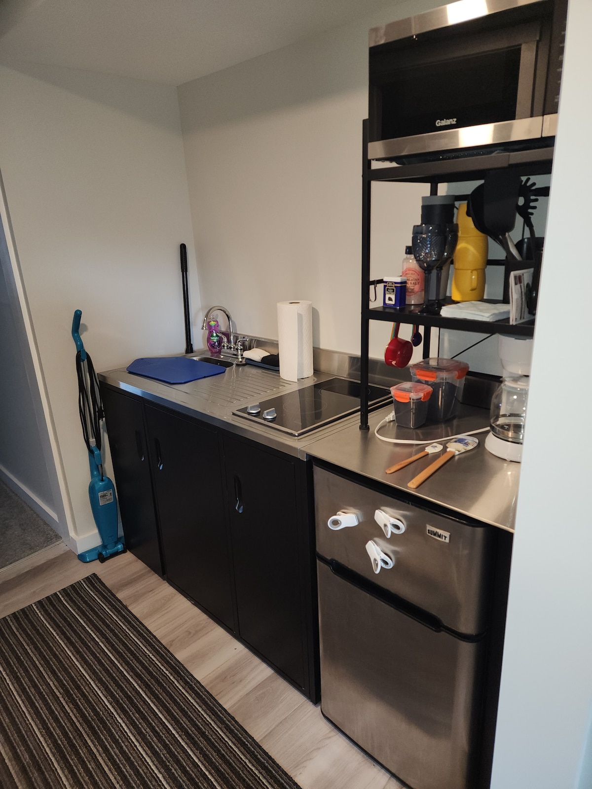 Este luminoso y espacioso departamento tipo estudio en el segundo piso se encuentra en un entorno tranquilo de Cape Neddick (en la línea de Ogunquit), a solo 5 minutos a pie de Perkins Cove. La acogedora unidad cuenta con una cocina pequeña separada (fregadero, mininevera, microondas, horno tostador de convección, placa de inducción), una sala de estar/dormitorio combinada y un baño con ducha de pie. Se proporciona una cafetera Keurig para tu comodidad. Te ofrecemos un par de K-Cups para que empieces. ¡Traé tus favoritos para disfrutar durante tu estadía!