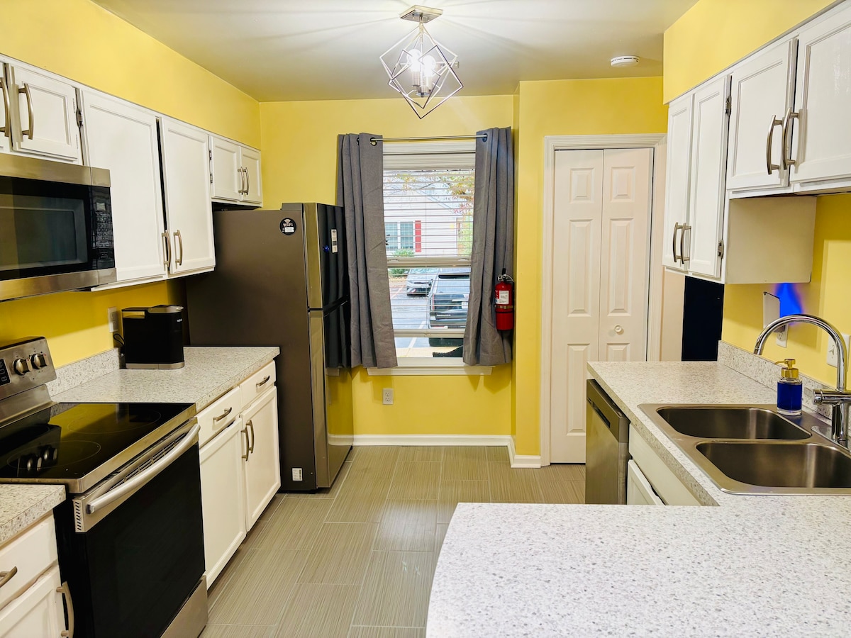¡Te damos la bienvenida a Pirate's Cove! ¡Justo al otro lado del puente de la casa de Los Piratas de la ilustre UNIVERSIDAD DE HAMPTON! * Excelente ubicación a poca distancia de todos los restaurantes del centro y cuenta con lo siguiente: * Alfombra nueva * Pintura fresca * Mobiliario/ropa de cama de lujo premium * 2 espacios de trabajo designados/escritorios en cada nivel con Internet WIFI superrápido * Cocina totalmente equipada con capacidad para 6-8 personas * Una barra de café/té Nota: La cama tamaño king también puede ser individual (2 colchones individuales).
