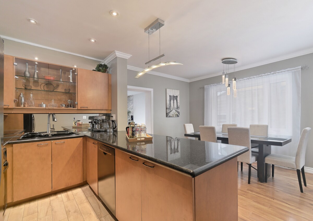 Situada en el corazón de Yorkville, esta casa adosada de 3 dormitorios y 2,5 baños con vistas a Ramsden Park, es el oasis ideal para familias, parejas o personas que viajan por trabajo. El espacio cuenta con un interior luminoso y lleno de sol con una chimenea de gas, WIFI, TV inteligente con todas las aplicaciones y cocina totalmente equipada. El alojamiento da al espacio verde con una maravillosa terraza trasera y una zona para comer.