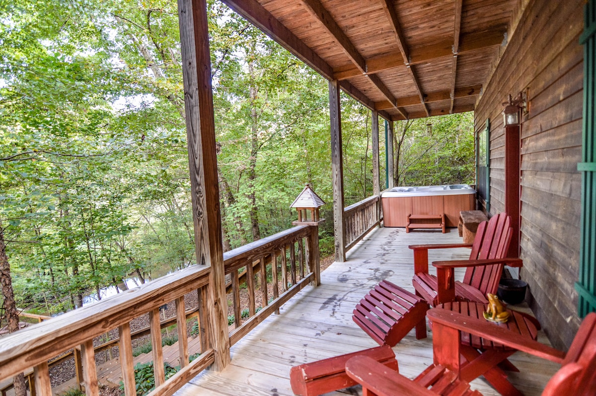 Nuestra casa Creek es privada y está arbolada, ubicada a poca distancia a pie de eventos deportivos universitarios. El bosque de bambú y el paseo por el arroyo hasta Cupid Falls están justo al otro lado del puente. Más de 2000 pies cuadrados de espacio habitable, que incluyen dos dormitorios, 2,5 baños, cocina totalmente equipada y un gran estudio en la planta baja con chimenea y bar. Hay buenos restaurantes y bares deportivos cerca. El lago Chatuge está a solo cinco minutos en coche. Vivimos en la colina y estamos a disposición de los huéspedes durante su estancia.
