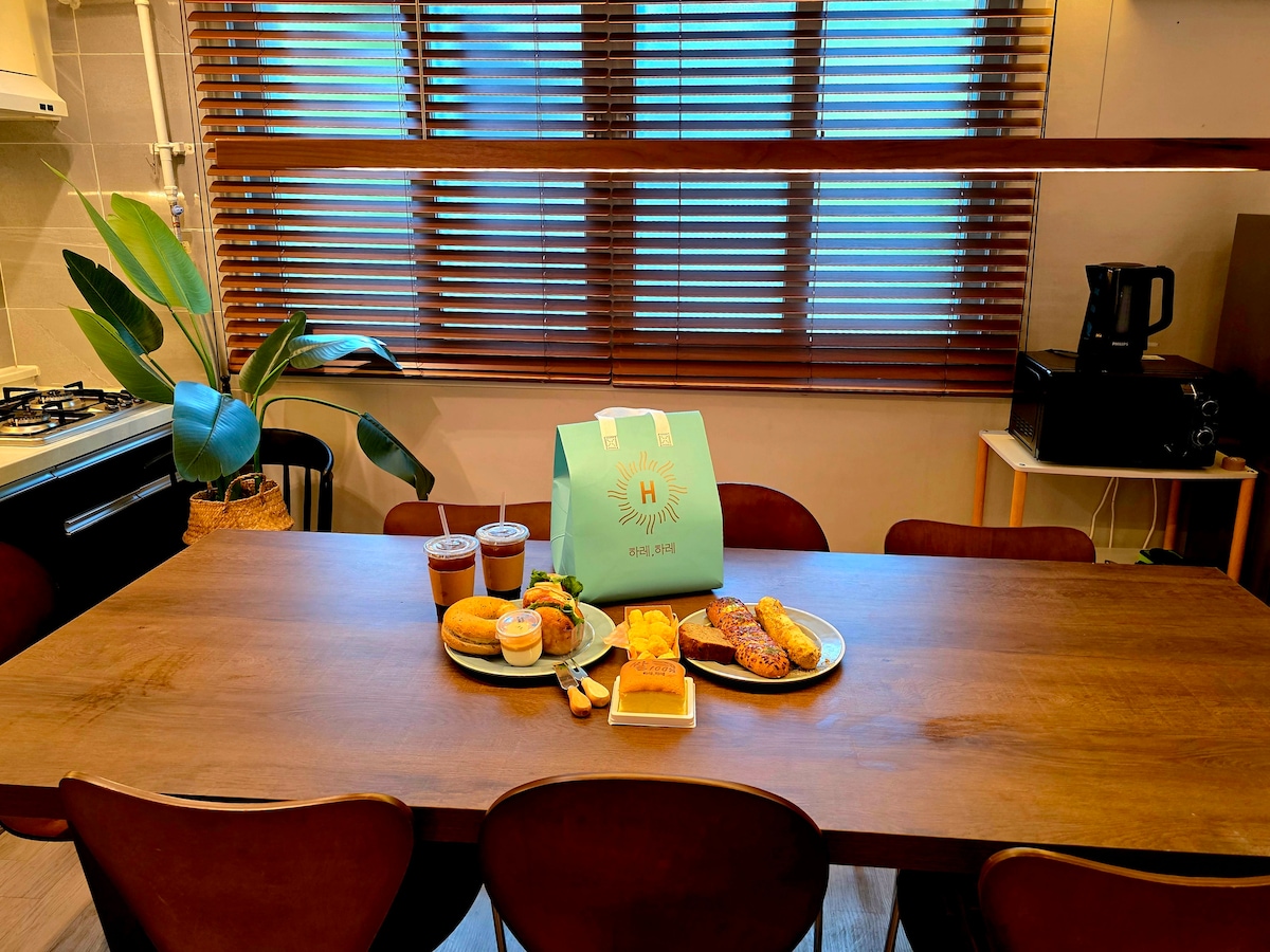 Esto es Hanmin Stay, un alojamiento emocional con terraza. Es un espacio de 2 habitaciones/1 baño/cocina/sala de estar/terraza privada. Se puede utilizar la ropa de cama del hotel para dormir cómodamente. - La ropa de cama se cambia todos los días. A 3 minutos a pie de la parada de autobús. - A 10 minutos a pie de la estación de Yongmun/a 10 minutos de Seongsimdang. - Hay una tienda y el mercado tradicional Hanmin cerca del alojamiento. - El inodoro está equipado con champú, acondicionador, gel de baño, toallas, pasta de dientes, limpieza de espuma, secador de pelo de alta calidad, etc. en el baño. - La nevera, el microondas, la cafetera, el café, las galletas, el agua, la tabla de cortar, la vajilla, las copas de vino, etc. se preparan en la cocina. - Puedes disfrutar de la cerveza/vino que has preparado en la terraza. (Sin embargo, las fiestas de barbacoa/ruido están prohibidas). - Por favor, no cocines alimentos (pescado) con olor en el alojamiento. - Sala de estar (TV inteligente, Netflix gratis), dormitorio (proyector de haz) - 2 espacios de estacionamiento gratuitos disponibles frente al alojamiento. - No se permite fumar en el alojamiento (incluida la terraza).