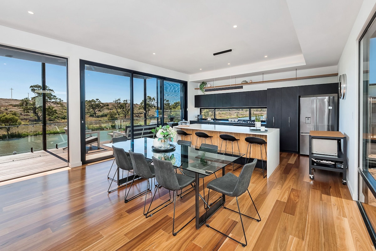 Nuestra hermosa casa de vacaciones está convenientemente ubicada cerca del municipio de Mannum. A solo 5 minutos a pie de la reserva Mary Ann y la calle principal. El área de estar y la cocina fluyen cómodamente hacia el balcón con vista al paseo marítimo. Tendrás tu propia playa privada, zona para nadar y atracar tu barco. ESTRICTAMENTE NO SE PERMITEN FIESTAS, DINERO NI GALLINAS Daños al final del muelle debido a inundaciones. Seguinos, etiquetá fotos, etc. aquí Ig: @waterfront_bliss
