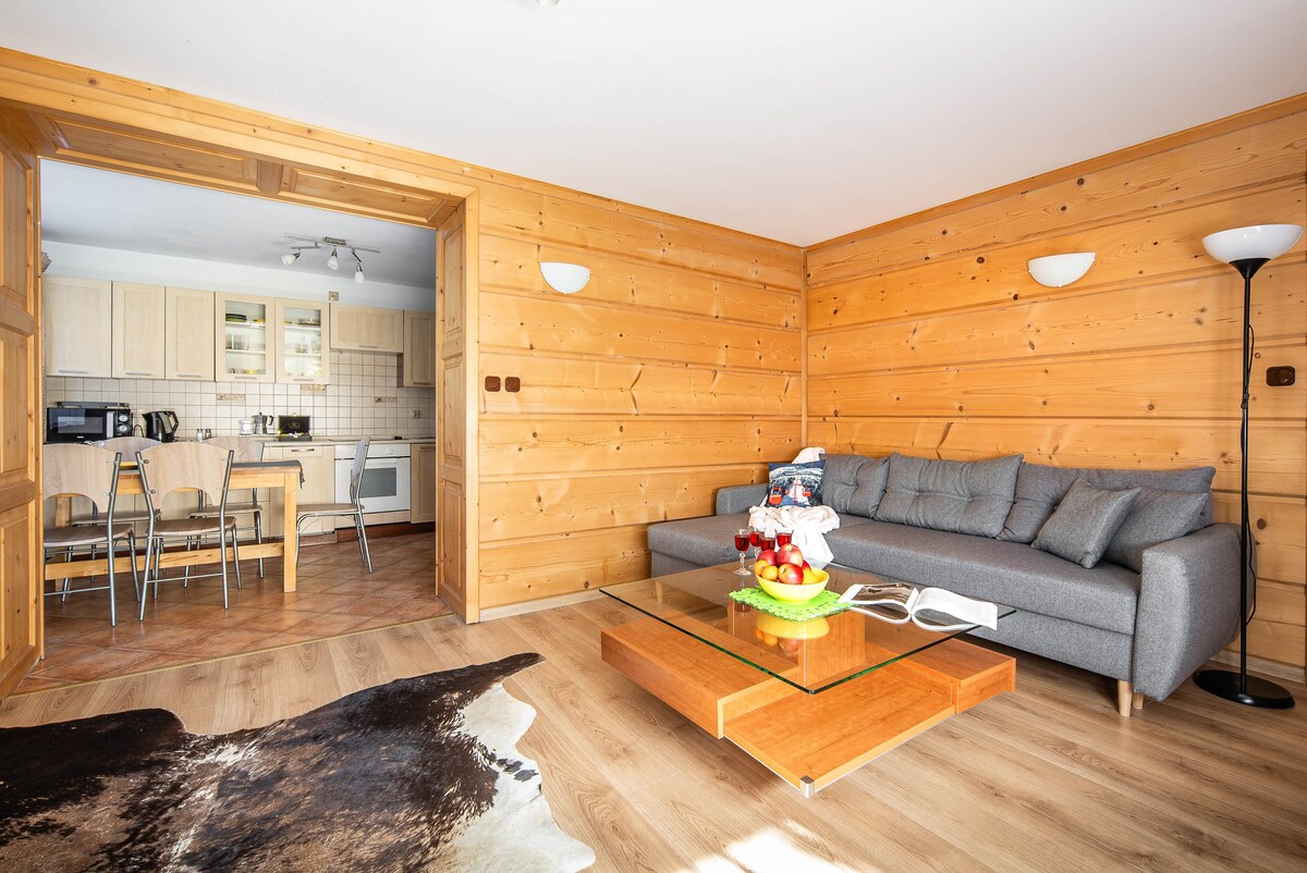 Relájate y desconecta en este alojamiento tranquilo y elegante. Siéntate en una terraza y respira profundamente con una taza de café recién hecho en el apartamento. Escucha a los pájaros, contempla la vista de todo el panorama de las montañas Tatra. O acuéstate en un suelo de madera directamente en una chimenea. En invierno, puedes llegar a las pistas de esquí ya con tus esquís puestos; en verano, las rutas de senderismo y senderismo comienzan en el bosque justo detrás del apartamento.