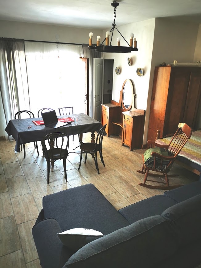 La casa de Jónás, con su fachada roja, se encuentra en el interior, al borde del bosque. La pequeña terraza frente al edificio da al valle: granero, arroyo, caballos. En el jardín hay dos robles gigantes que dan sombra, con un columpio encima, y una mesa de jardín y sillas debajo. ¿Qué te ofrecemos? Recibirás una llave y toda la información que necesitas para sentirte como en casa, ¡el resto depende de ti!