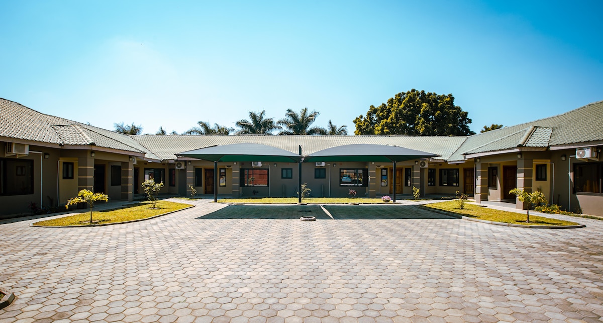 Nuestro refugio perfecto se encuentra en una comunidad cerrada serena ubicada dentro de una comunidad cerrada de 3rd Street, Ibex Hill. Estamos seguros con los guardias de patrulla en cualquier momento. Estamos convenientemente ubicados a diez minutos en coche de tres de los últimos centros comerciales de Lusaka y no muy lejos de el aeropuerto y la embajada estadounidense, por lo que es el lugar perfecto para hospedarte. También tenemos estaciones de policía Ibex y Chelstone a tu alcance, lo que intensifica la seguridad. ¡Esperamos tu visita!