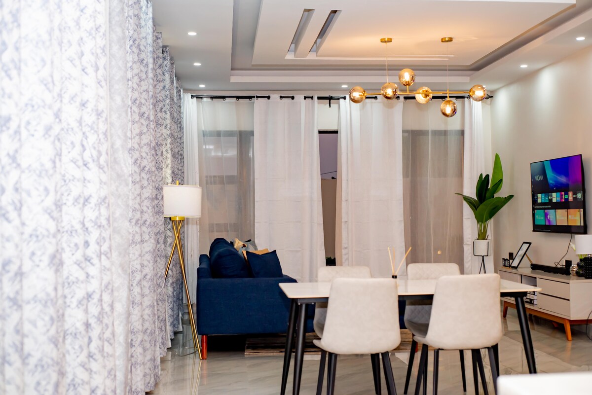 Modern, private, and perfectly located! Enjoy an LG Dual Inverter AC, LG OLED Evo AI 55" TV (2025 model) with prime video. Netflix, YouTube etc. Starlink WiFi. 2m orthopedic hybrid bed, 24/7 power, hot water, a solar iron, and a full kitchen with gas stove, double-door fridge, bar stools, and cocktail glasses. Relax in a cozy living room with a ceiling speaker, workspace, and beautiful couch. Just 5–10 minutes from six malls. You’ll love it here. Book now!