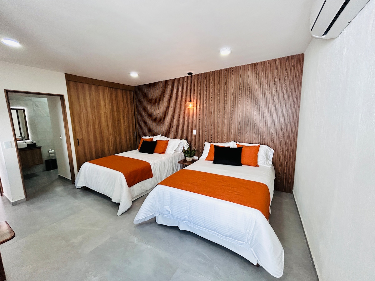 Nuestra suite cuenta con amplios espacios diseñados para satisfacer tus necesidades, desde una acogedora sala de estar hasta un dormitorio indulgente y un baño de lujo. La suite consta de cama king size o dos camas ( sujetas a disponibilidad) aire acondicionado, television en la sala y en la habitación, dentro de nuestras instalaciones podrás disfrutar del gimnasio, alberca climatizada, y además siéntete seguro dejando tu auto en nuestro estacionamiento