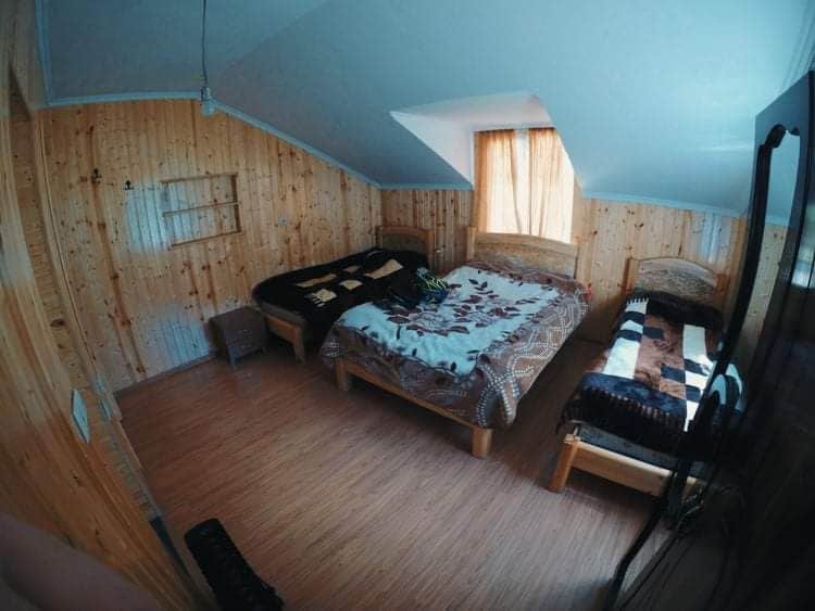 La casa de campo “Sabri” se encuentra en el centro vacacional de Goderdzi, cerca del telesquí central. No hace falta transporte adicional para desplazarse. El interior de la casa está equipado con todos los suministros que necesitas: tres dormitorios, estufa a leña, calefacción eléctrica en todas las habitaciones, instalaciones de cocina totalmente equipadas. TV por Internet. La casa es de madera y está rodeada de metal especial para el calor. El agua es especial y fluye desde el suelo. Todas las habitaciones son cómodas, y hay 6 personas y pueden ser más.
