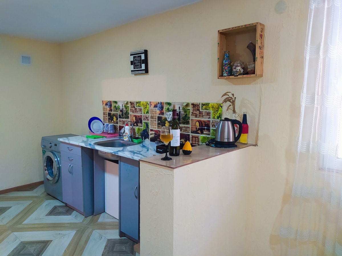 New apartment in a two-story building, isolated and with a separate entrance, located in the historical center of the city. Newly renovated accommodation is available to guests. The city's main attractions, restaurants, cafes and shops are within walking distance. The homeowners speak English, Russian and Georgian.