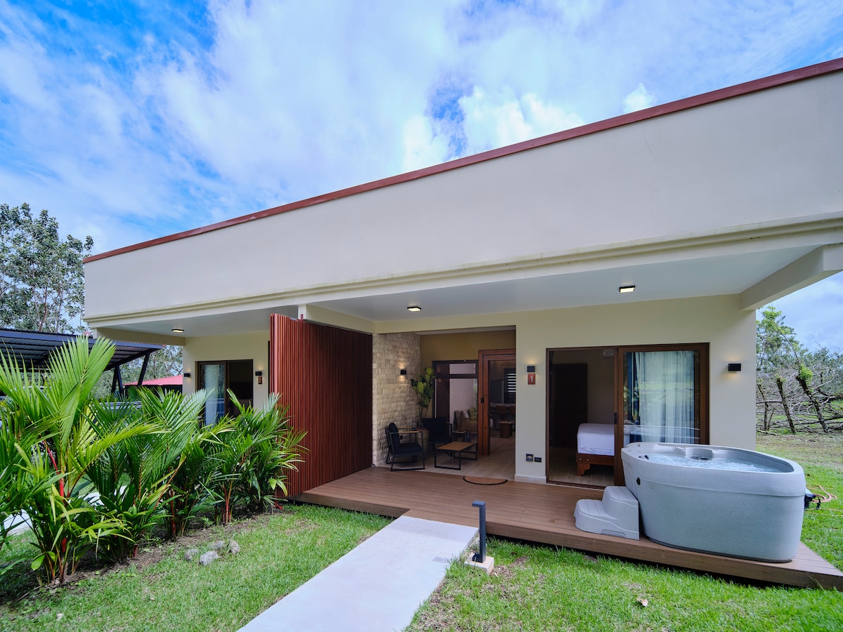 Un hospedaje para escapar de la rutina y conectar con la naturaleza, tiene un diseño moderno con una cálida decoración, rodeado de naturaleza donde podrás observar muchas aves, una linda vista al volcán, balcón, terraza, una refrescante piscina y jacuzzi privado. Un lugar ideal para parejas, amigos o para que puedas teletrabajar tranquilamente. Ubicados estratégicamente cerca de todas las actividades principales y a tan solo 2.5 km del centro de La Fortuna y a 1 km de La catarata La Fortuna.