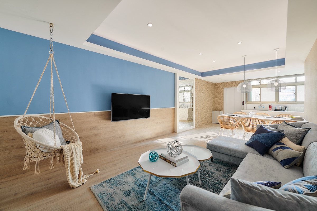 F2/Blue Sun 8 personas/Ascensor/2 habitaciones, 1 salón, 2 baños/MRT Zhongshan Junior High School 7 minutos/Aeropuerto de Songshan 5 minutos/Supermercado conveniente abajo