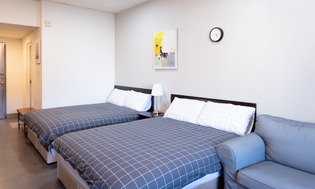 A 5 minutos de la estación de MRT Ximending. Puerta independiente. Netflix. Habitación con balcón y ascensor. Tranquila. Para 2-6 personas. Inodoro gratis.