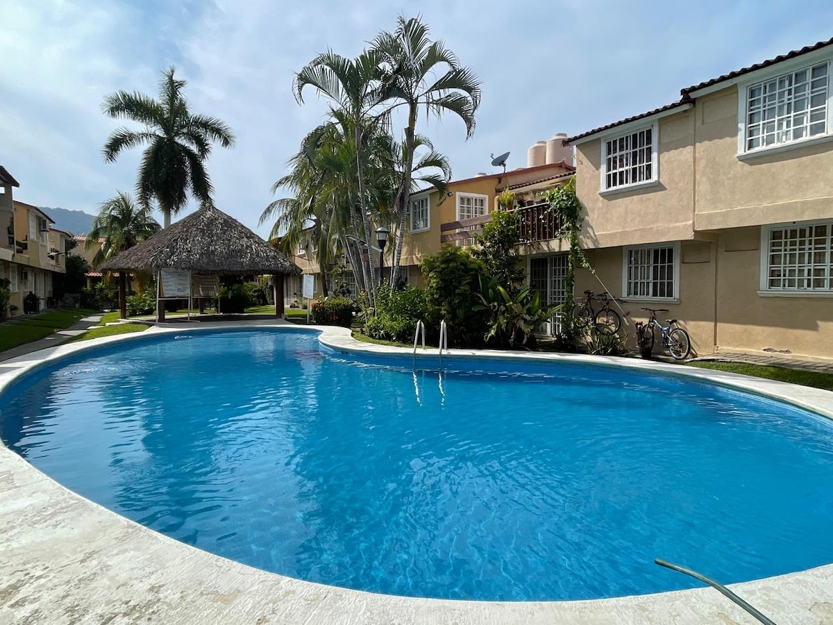 Relájate en este espacio tranquilo y elegante, ubicado en Punta Garrobo el complejo más exclusivo de Zihuatanejo, enclavado en las exuberantes colinas, con increíbles vistas de las verdes montañas y el Océano Pacífico. Amenidades: -Acceso privado a la playa Las Gatas -Piscina Privada -Servicio de Limpieza incluido (cada tercer dia) -Áreas al aire libre -Club de playa -Pista de tenis y pádel (No incluye equipo) -Senderos naturales -Kayaks (Deben llevar salvavidas no lo proporcionamos)
