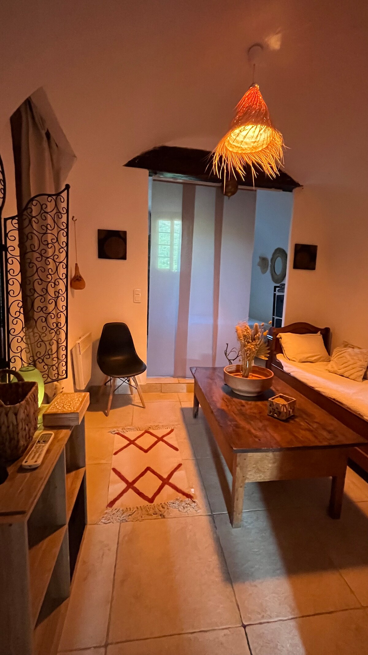 La Bergerie le da la bienvenida en un ambiente cálido y luminoso: un gran salón, una cocina equipada y 2 dormitorios en la planta superior. El cuarto de baño está en la planta baja. Le proporcionamos la ropa de cama y los productos esenciales para el desayuno (té, café, chocolate). Para cocinar, también se proporcionan especias y aceite de oliva. La terraza está rodeada de naturaleza con una suntuosa vista de las montañas. Perfecto para unas vacaciones serenas.